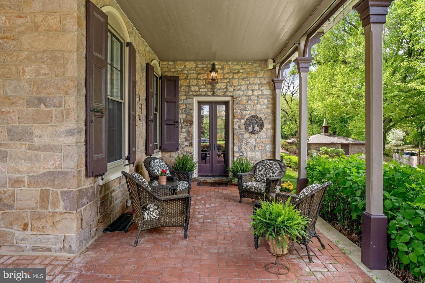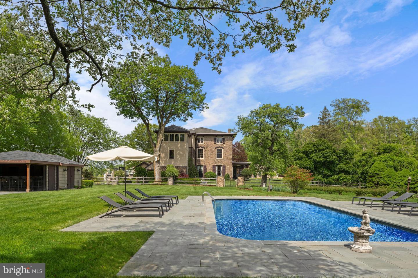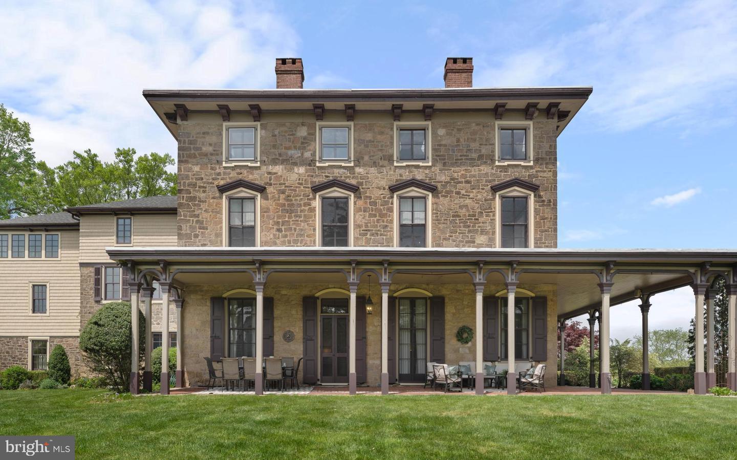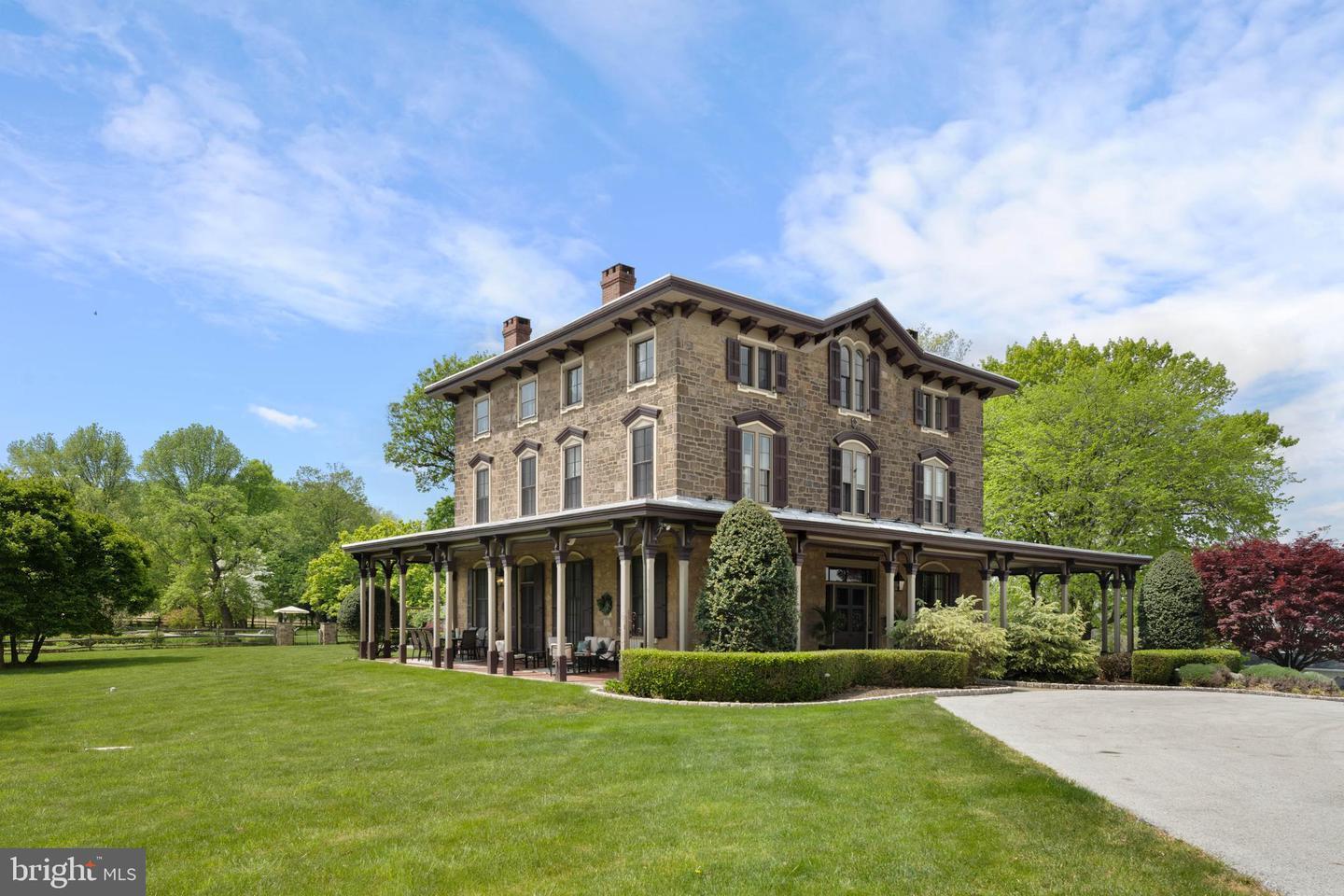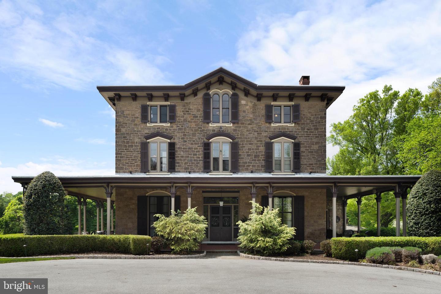 Immerse yourself in historical elegance and luxury at this 8,000+ square foot masterpiece, originally part of the esteemed Armentrout Estate. Nestled within 106 acres of meticulously preserved woodlands and scenic trails, this 8 bedroom, 5 full and 2 half bath Italianate residence underwent a comprehensive restoration in 2009 by the current owners and renowned architect R. A. Hoffman, and was restored with impeccable attention to detail. The estate boasts an array of original features that exude grandeur and craftsmanship, including ornate moldings, multiple marble fireplaces, hand-carved woodwork, and exquisite millwork. An impressive wrap-around porch provides relaxing spaces in which to enjoy the views, punctuated by birdsong. The grandeur continues inside, where the original double front doors open into a stately center hall, flanked by a grand yet comfortable space designed for both entertaining and refined living. Spectacular floor-to-ceiling Jefferson windows bathe the interiors in natural light, enhancing the breathtaking vistas of the estate. To the left, the formal living room with fireplace seamlessly connects through pocket doors to the elegant dining room, adorned with pretty corner built-ins and access to the large wrap-around porch. The expansive gourmet kitchen is a culinary enthusiast's dream, featuring bespoke cabinetry, large marble island, professional-grade 6-burner Wolf stove with double ovens, Sub-Zero refrigerator, and a well-appointed butler’s pantry that includes a rear staircase, powder room, and a versatile mudroom/family entrance. The residence also hosts a delightful wet bar area set against an exposed stone wall, offering direct access to the outdoors. The upper floors are equally impressive, with the primary suite showcasing another marble fireplace and oversized windows that flood the space with light. The luxurious white marble bathroom is complete with a fireplace, soaking tub, walk-in shower, double vanity, and a custom-designed walk-in closet with extensive shelving and storage solutions. Additional bedroom suites and a laundry room with ample storage complete the second floor. Four more bedrooms, a family room with vaulted ceilings, exposed beams and stone walls, and a sunlit office overlooking the grounds and pool, finish off the third floor. The third floor houses more bedrooms, additional storage areas, and a cedar closet. Descend to the basement to discover a spectacular Italian villa-inspired wine cellar and tasting rooms, featuring slate floors, brick arches, and stone walls—perfect for hosting wine tastings and intimate dinner parties. A climate-controlled wine storage room ensures the preservation of valuable collections, and a spacious room with a wet bar, dishwasher, and beverage fridge offers ample space for hosting. The estate's grounds are a sanctuary, featuring multiple gardens, mature trees, an historic icehouse, picturesque stone walls, sitting areas, and a tranquil pool with bluestone patio and pool house. Surrounded by the Camp Woods and Armentrout Preserves, the estate offers easy access to major roads, vibrant shopping and dining, Wings Field, and the train station, ensuring a convenient commute to Center City Philadelphia or New York City. This property is not just a home, but a legacy of luxury and history ready to be cherished by its new stewards.