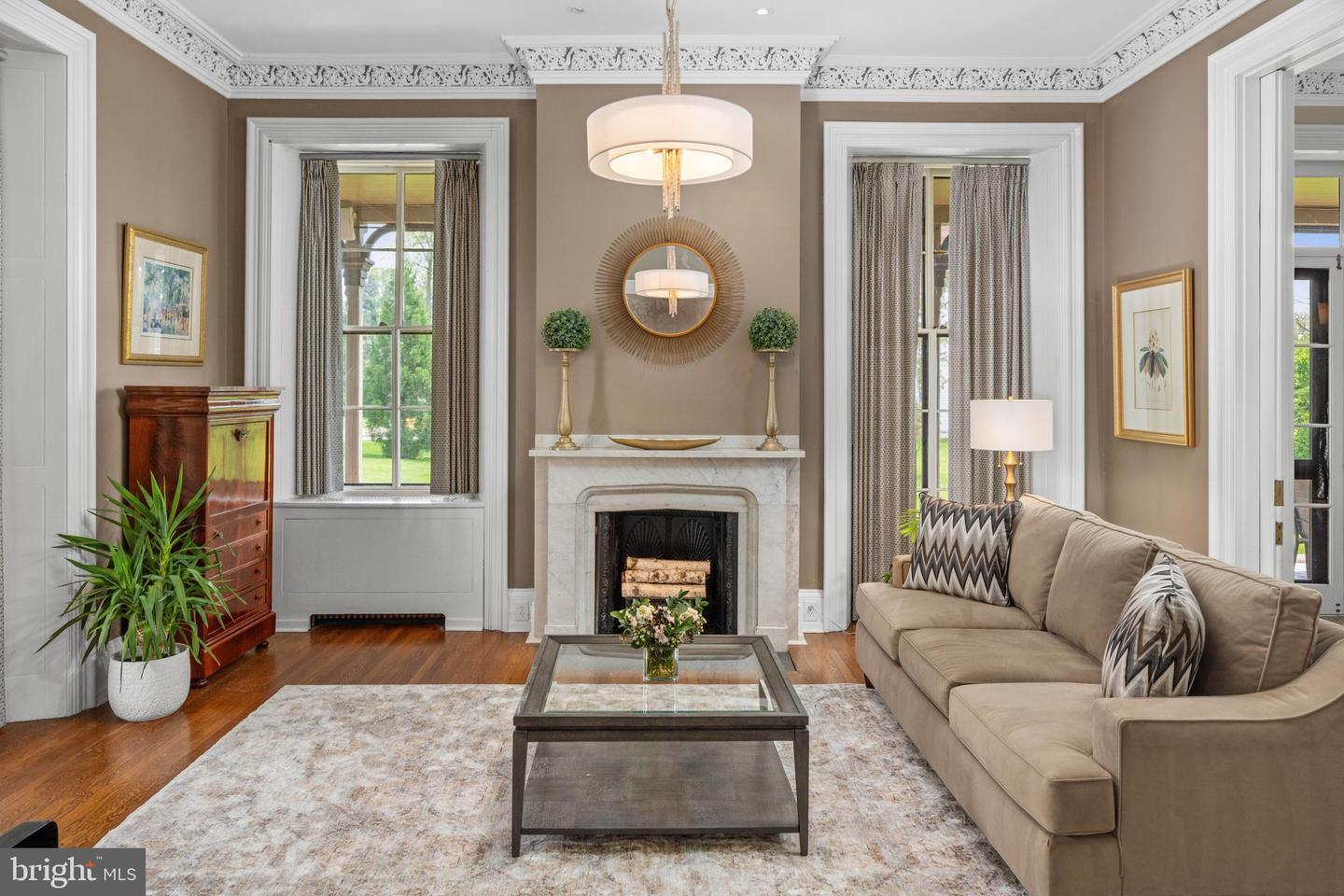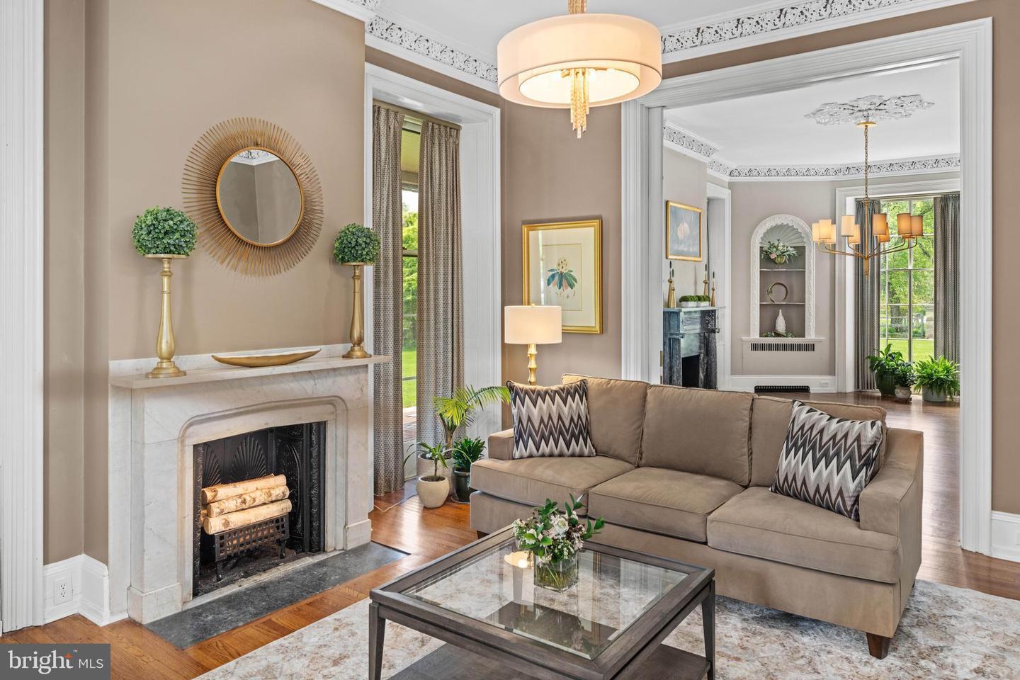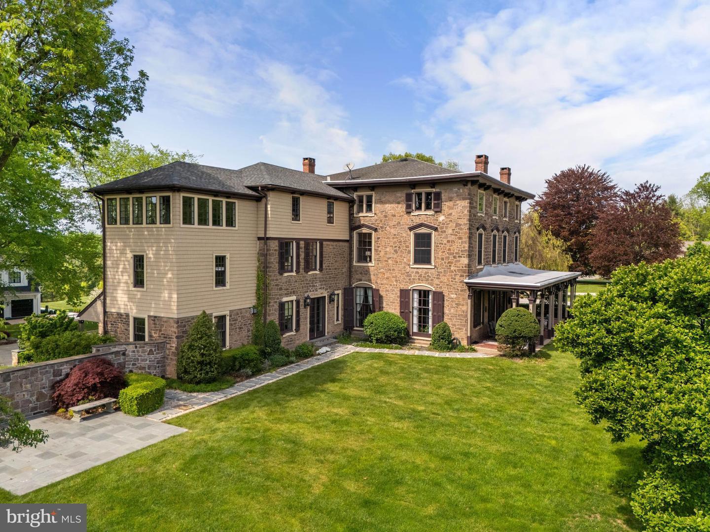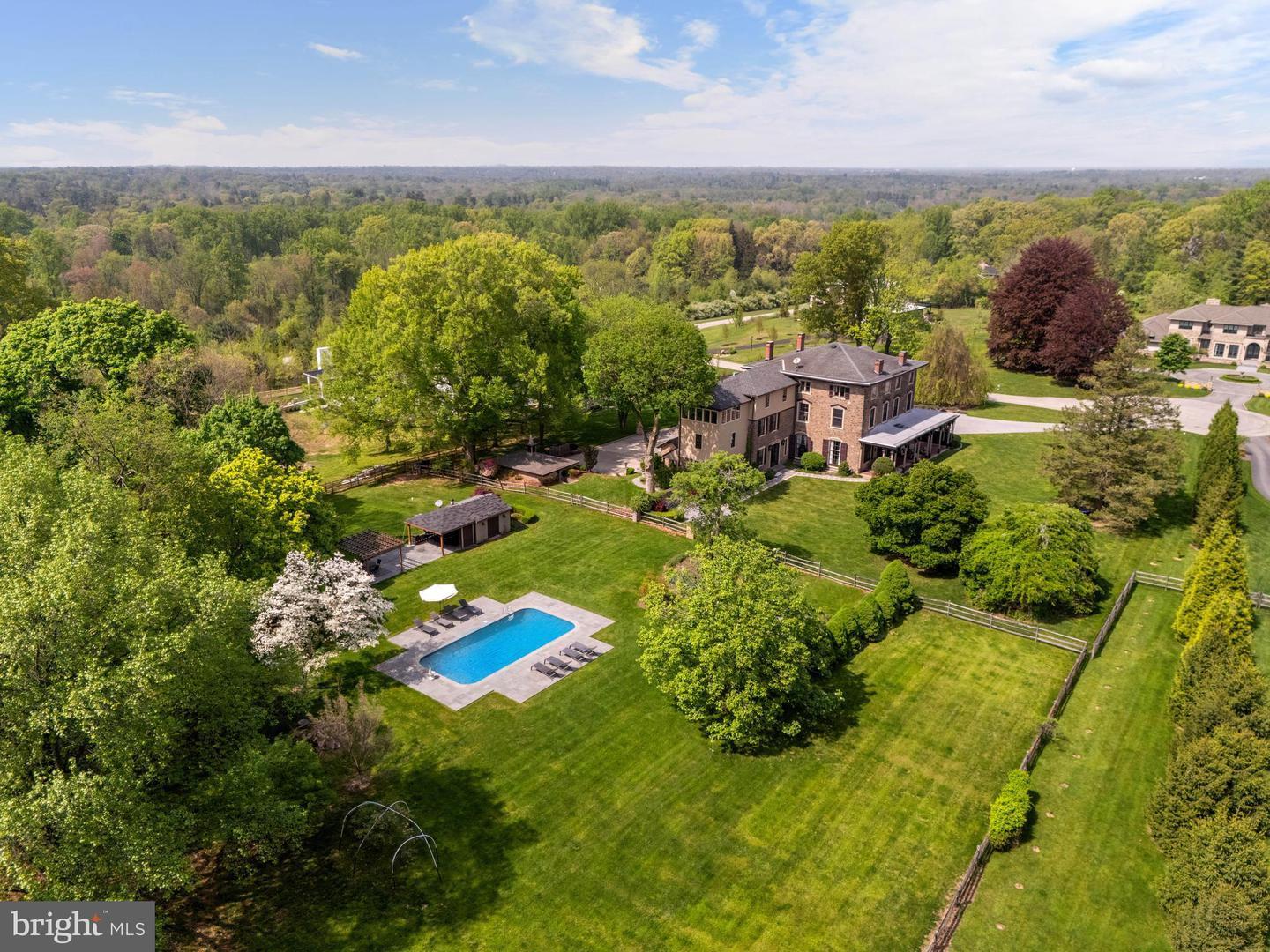 Immerse yourself in historical elegance and luxury at this 8,000+ square foot masterpiece, originally part of the esteemed Armentrout Estate. Nestled within 106 acres of meticulously preserved woodlands and scenic trails, this 8 bedroom, 5 full and 2 half bath Italianate residence underwent a comprehensive restoration in 2009 by the current owners and renowned architect R. A. Hoffman, and was restored with impeccable attention to detail. The estate boasts an array of original features that exude grandeur and craftsmanship, including ornate moldings, multiple marble fireplaces, hand-carved woodwork, and exquisite millwork. An impressive wrap-around porch provides relaxing spaces in which to enjoy the views, punctuated by birdsong. The grandeur continues inside, where the original double front doors open into a stately center hall, flanked by a grand yet comfortable space designed for both entertaining and refined living. Spectacular floor-to-ceiling Jefferson windows bathe the interiors in natural light, enhancing the breathtaking vistas of the estate. To the left, the formal living room with fireplace seamlessly connects through pocket doors to the elegant dining room, adorned with pretty corner built-ins and access to the large wrap-around porch. The expansive gourmet kitchen is a culinary enthusiast's dream, featuring bespoke cabinetry, large marble island, professional-grade 6-burner Wolf stove with double ovens, Sub-Zero refrigerator, and a well-appointed butler’s pantry that includes a rear staircase, powder room, and a versatile mudroom/family entrance. The residence also hosts a delightful wet bar area set against an exposed stone wall, offering direct access to the outdoors. The upper floors are equally impressive, with the primary suite showcasing another marble fireplace and oversized windows that flood the space with light. The luxurious white marble bathroom is complete with a fireplace, soaking tub, walk-in shower, double vanity, and a custom-designed walk-in closet with extensive shelving and storage solutions. Additional bedroom suites and a laundry room with ample storage complete the second floor. Four more bedrooms, a family room with vaulted ceilings, exposed beams and stone walls, and a sunlit office overlooking the grounds and pool, finish off the third floor. The third floor houses more bedrooms, additional storage areas, and a cedar closet. Descend to the basement to discover a spectacular Italian villa-inspired wine cellar and tasting rooms, featuring slate floors, brick arches, and stone walls—perfect for hosting wine tastings and intimate dinner parties. A climate-controlled wine storage room ensures the preservation of valuable collections, and a spacious room with a wet bar, dishwasher, and beverage fridge offers ample space for hosting. The estate's grounds are a sanctuary, featuring multiple gardens, mature trees, an historic icehouse, picturesque stone walls, sitting areas, and a tranquil pool with bluestone patio and pool house. Surrounded by the Camp Woods and Armentrout Preserves, the estate offers easy access to major roads, vibrant shopping and dining, Wings Field, and the train station, ensuring a convenient commute to Center City Philadelphia or New York City. This property is not just a home, but a legacy of luxury and history ready to be cherished by its new stewards.