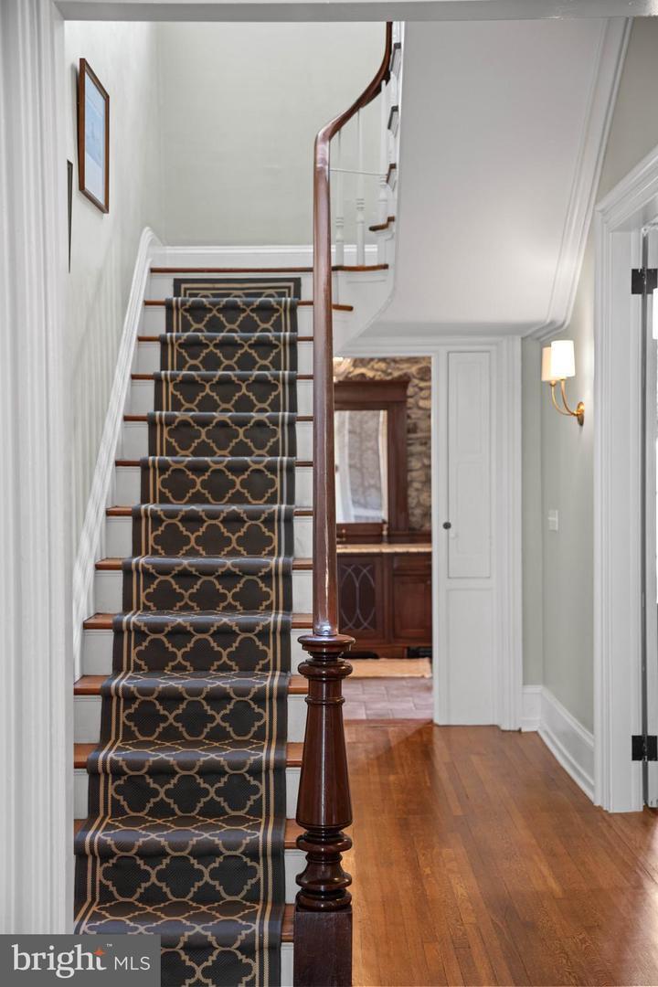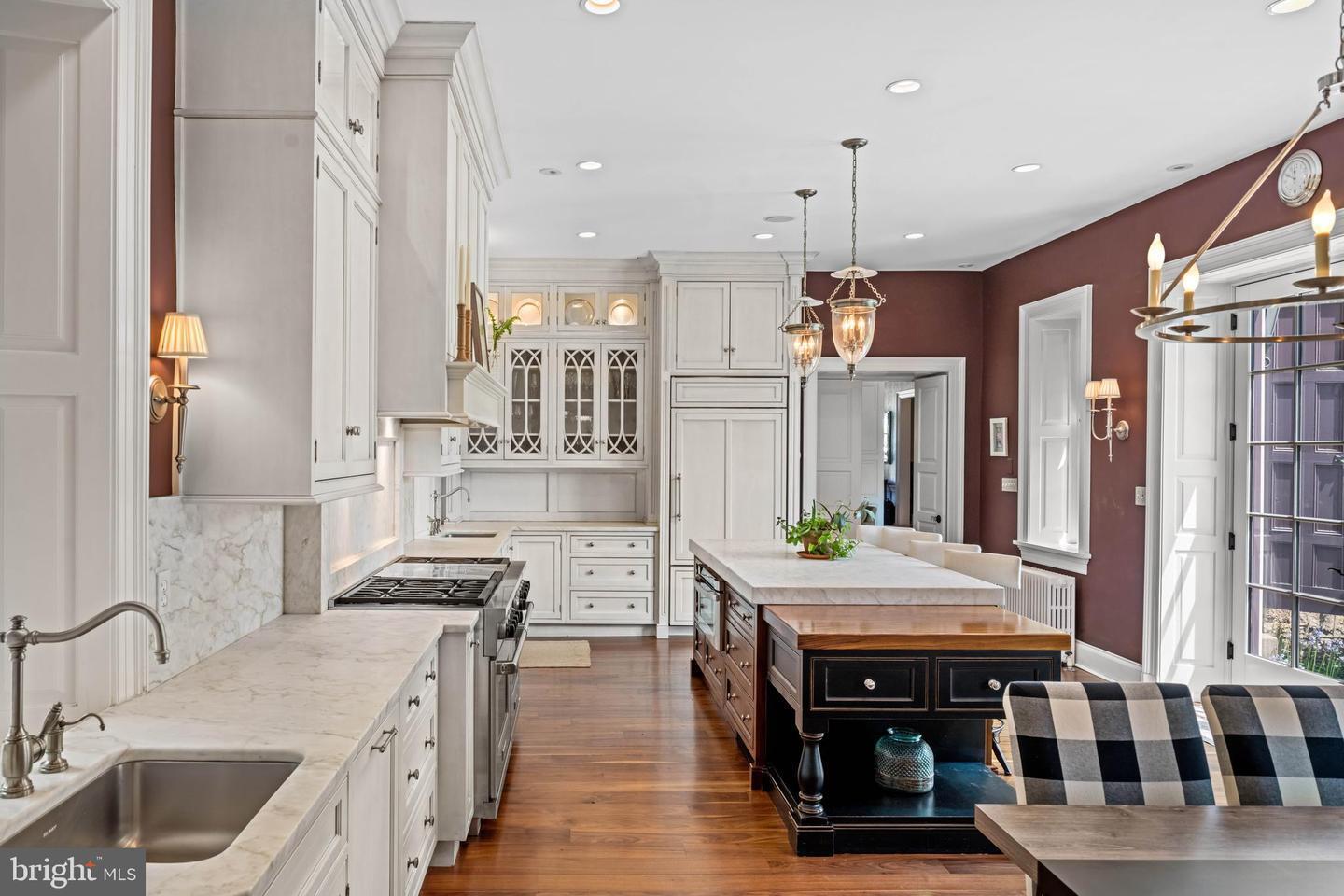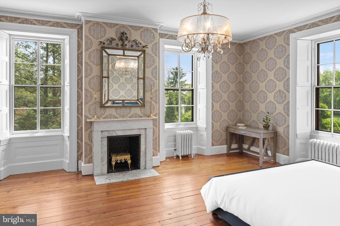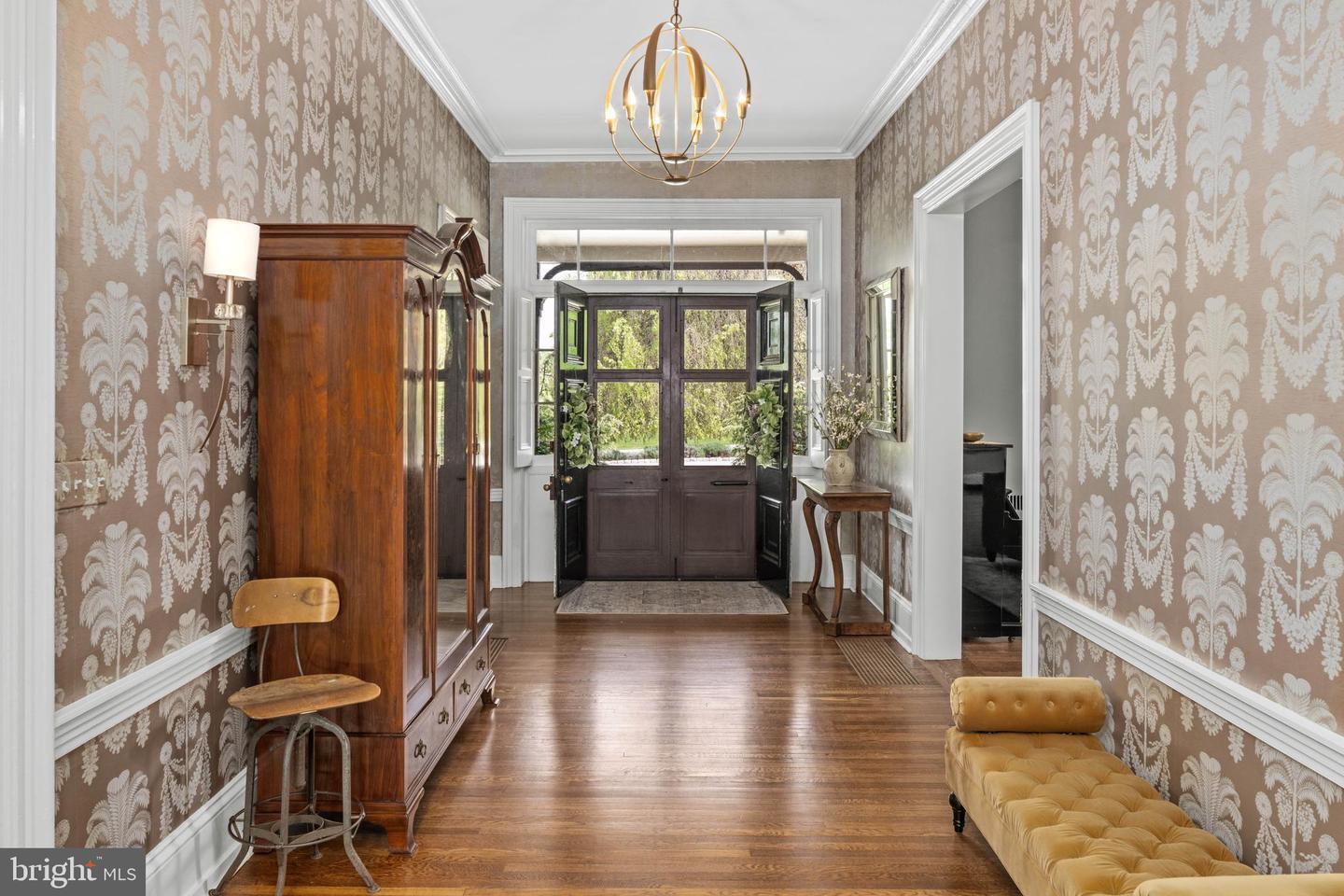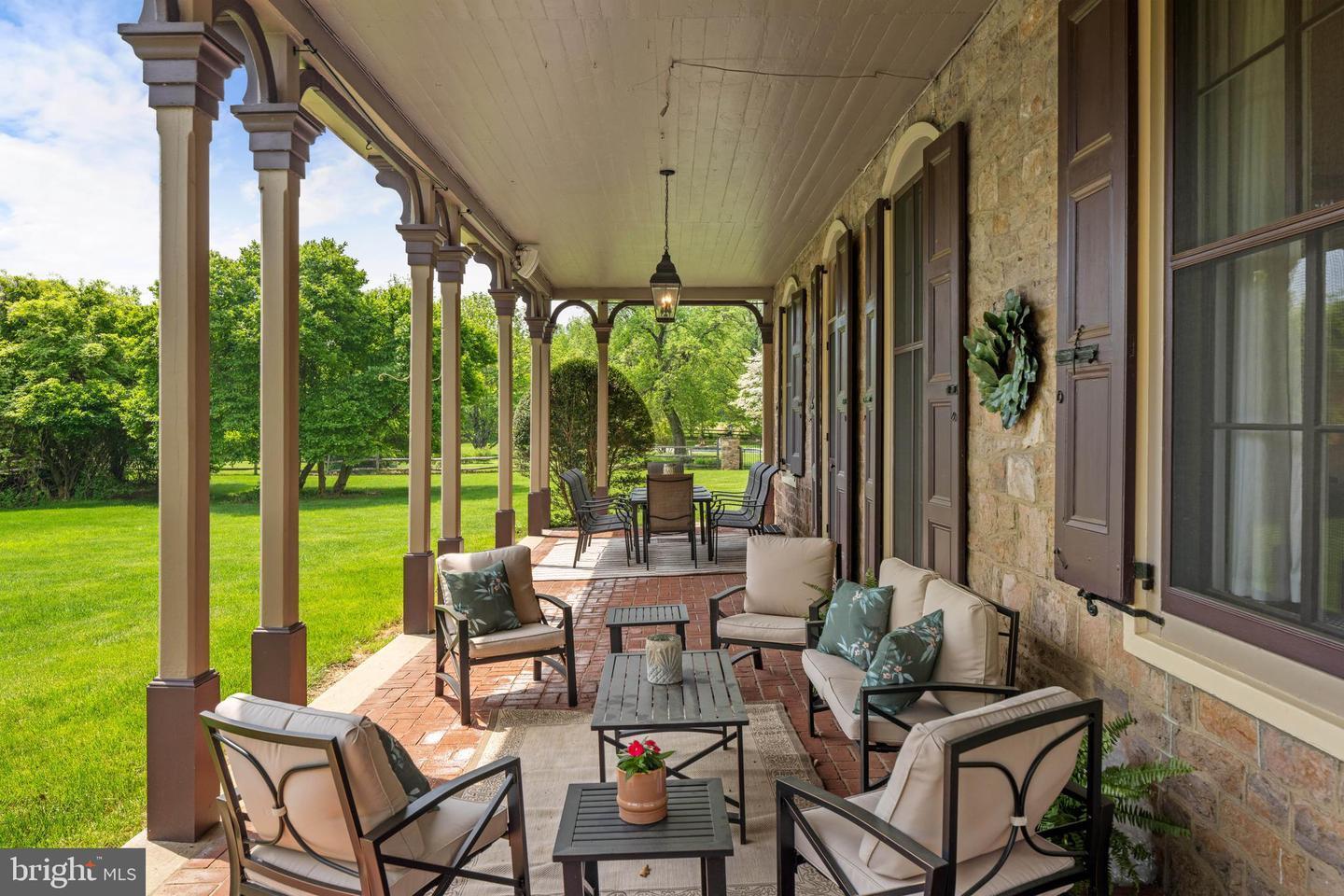 Immerse yourself in historical elegance and luxury at this 8,000+ square foot masterpiece, originally part of the esteemed Armentrout Estate. Nestled within 106 acres of meticulously preserved woodlands and scenic trails, this 8 bedroom, 5 full and 2 half bath Italianate residence underwent a comprehensive restoration in 2009 by the current owners and renowned architect R. A. Hoffman, and was restored with impeccable attention to detail. The estate boasts an array of original features that exude grandeur and craftsmanship, including ornate moldings, multiple marble fireplaces, hand-carved woodwork, and exquisite millwork. An impressive wrap-around porch provides relaxing spaces in which to enjoy the views, punctuated by birdsong. The grandeur continues inside, where the original double front doors open into a stately center hall, flanked by a grand yet comfortable space designed for both entertaining and refined living. Spectacular floor-to-ceiling Jefferson windows bathe the interiors in natural light, enhancing the breathtaking vistas of the estate. To the left, the formal living room with fireplace seamlessly connects through pocket doors to the elegant dining room, adorned with pretty corner built-ins and access to the large wrap-around porch. The expansive gourmet kitchen is a culinary enthusiast's dream, featuring bespoke cabinetry, large marble island, professional-grade 6-burner Wolf stove with double ovens, Sub-Zero refrigerator, and a well-appointed butler’s pantry that includes a rear staircase, powder room, and a versatile mudroom/family entrance. The residence also hosts a delightful wet bar area set against an exposed stone wall, offering direct access to the outdoors. The upper floors are equally impressive, with the primary suite showcasing another marble fireplace and oversized windows that flood the space with light. The luxurious white marble bathroom is complete with a fireplace, soaking tub, walk-in shower, double vanity, and a custom-designed walk-in closet with extensive shelving and storage solutions. Additional bedroom suites and a laundry room with ample storage complete the second floor. Four more bedrooms, a family room with vaulted ceilings, exposed beams and stone walls, and a sunlit office overlooking the grounds and pool, finish off the third floor. The third floor houses more bedrooms, additional storage areas, and a cedar closet. Descend to the basement to discover a spectacular Italian villa-inspired wine cellar and tasting rooms, featuring slate floors, brick arches, and stone walls—perfect for hosting wine tastings and intimate dinner parties. A climate-controlled wine storage room ensures the preservation of valuable collections, and a spacious room with a wet bar, dishwasher, and beverage fridge offers ample space for hosting. The estate's grounds are a sanctuary, featuring multiple gardens, mature trees, an historic icehouse, picturesque stone walls, sitting areas, and a tranquil pool with bluestone patio and pool house. Surrounded by the Camp Woods and Armentrout Preserves, the estate offers easy access to major roads, vibrant shopping and dining, Wings Field, and the train station, ensuring a convenient commute to Center City Philadelphia or New York City. This property is not just a home, but a legacy of luxury and history ready to be cherished by its new stewards.