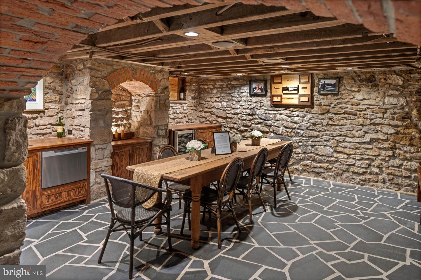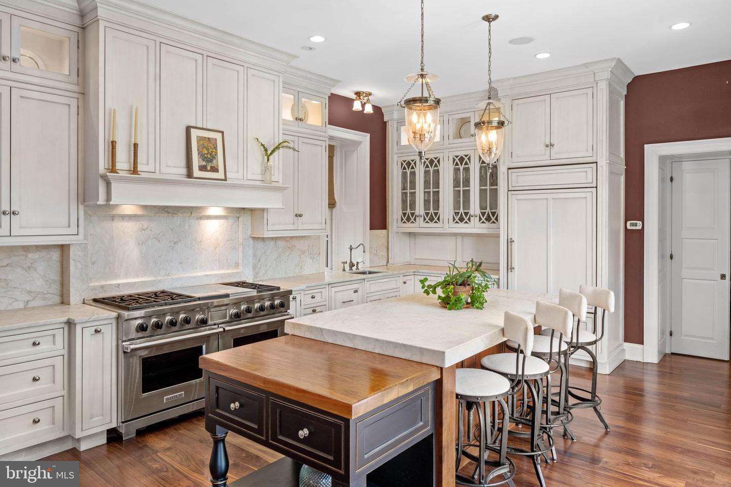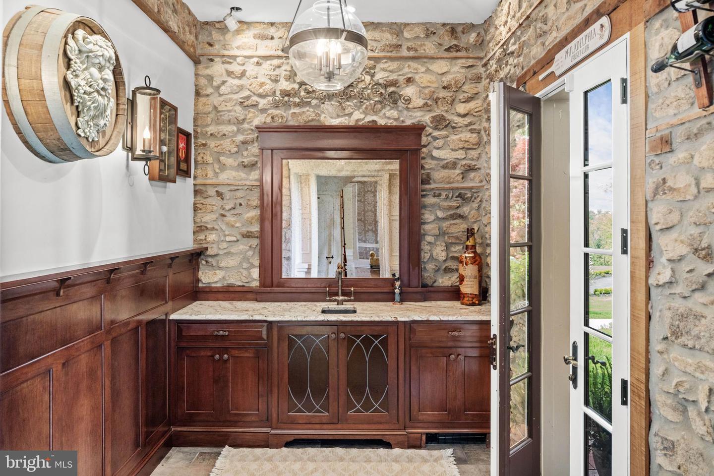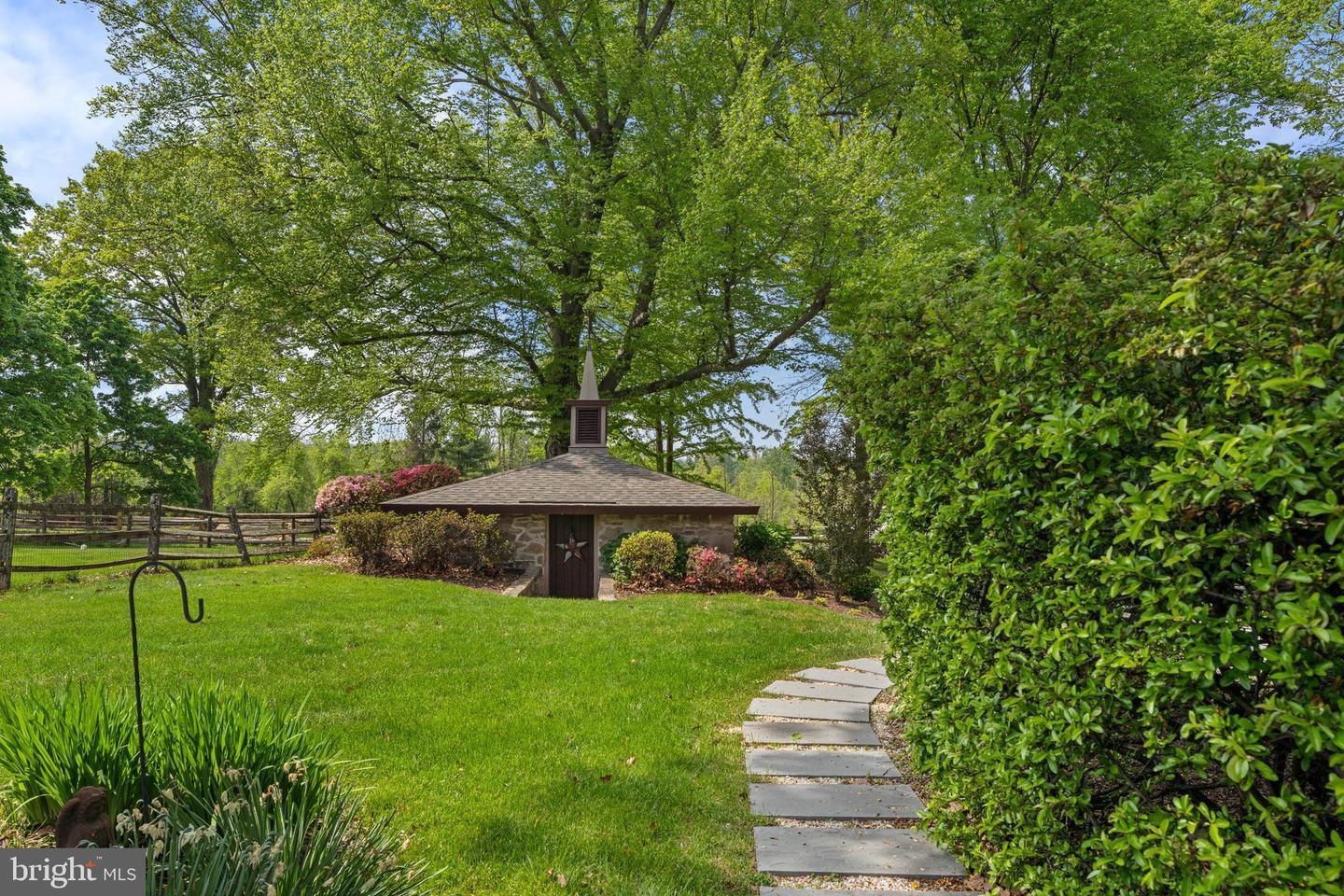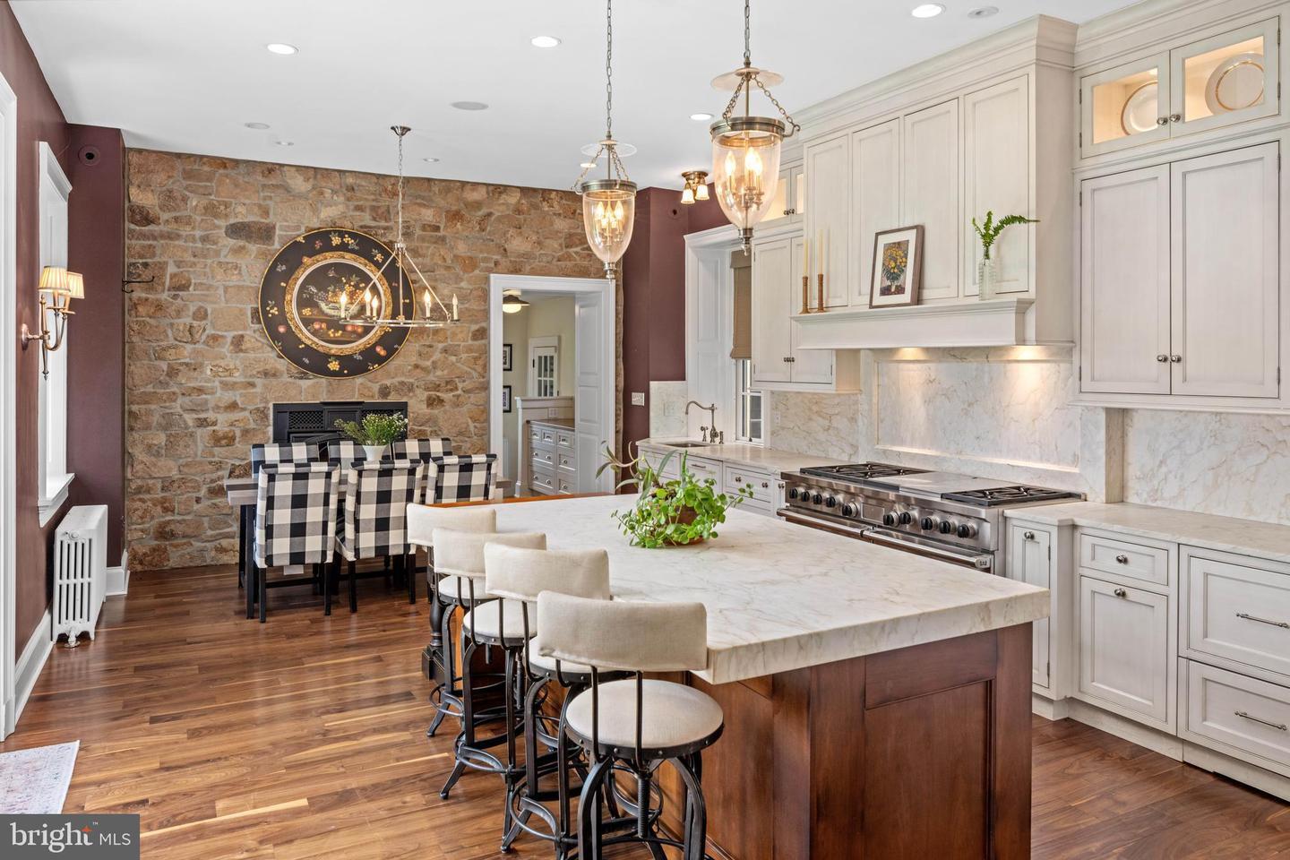 Immerse yourself in historical elegance and luxury at this 8,000+ square foot masterpiece, originally part of the esteemed Armentrout Estate. Nestled within 106 acres of meticulously preserved woodlands and scenic trails, this 8 bedroom, 5 full and 2 half bath Italianate residence underwent a comprehensive restoration in 2009 by the current owners and renowned architect R. A. Hoffman, and was restored with impeccable attention to detail. The estate boasts an array of original features that exude grandeur and craftsmanship, including ornate moldings, multiple marble fireplaces, hand-carved woodwork, and exquisite millwork. An impressive wrap-around porch provides relaxing spaces in which to enjoy the views, punctuated by birdsong. The grandeur continues inside, where the original double front doors open into a stately center hall, flanked by a grand yet comfortable space designed for both entertaining and refined living. Spectacular floor-to-ceiling Jefferson windows bathe the interiors in natural light, enhancing the breathtaking vistas of the estate. To the left, the formal living room with fireplace seamlessly connects through pocket doors to the elegant dining room, adorned with pretty corner built-ins and access to the large wrap-around porch. The expansive gourmet kitchen is a culinary enthusiast's dream, featuring bespoke cabinetry, large marble island, professional-grade 6-burner Wolf stove with double ovens, Sub-Zero refrigerator, and a well-appointed butler’s pantry that includes a rear staircase, powder room, and a versatile mudroom/family entrance. The residence also hosts a delightful wet bar area set against an exposed stone wall, offering direct access to the outdoors. The upper floors are equally impressive, with the primary suite showcasing another marble fireplace and oversized windows that flood the space with light. The luxurious white marble bathroom is complete with a fireplace, soaking tub, walk-in shower, double vanity, and a custom-designed walk-in closet with extensive shelving and storage solutions. Additional bedroom suites and a laundry room with ample storage complete the second floor. Four more bedrooms, a family room with vaulted ceilings, exposed beams and stone walls, and a sunlit office overlooking the grounds and pool, finish off the third floor. The third floor houses more bedrooms, additional storage areas, and a cedar closet. Descend to the basement to discover a spectacular Italian villa-inspired wine cellar and tasting rooms, featuring slate floors, brick arches, and stone walls—perfect for hosting wine tastings and intimate dinner parties. A climate-controlled wine storage room ensures the preservation of valuable collections, and a spacious room with a wet bar, dishwasher, and beverage fridge offers ample space for hosting. The estate's grounds are a sanctuary, featuring multiple gardens, mature trees, an historic icehouse, picturesque stone walls, sitting areas, and a tranquil pool with bluestone patio and pool house. Surrounded by the Camp Woods and Armentrout Preserves, the estate offers easy access to major roads, vibrant shopping and dining, Wings Field, and the train station, ensuring a convenient commute to Center City Philadelphia or New York City. This property is not just a home, but a legacy of luxury and history ready to be cherished by its new stewards.
