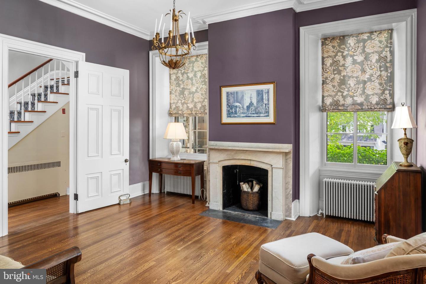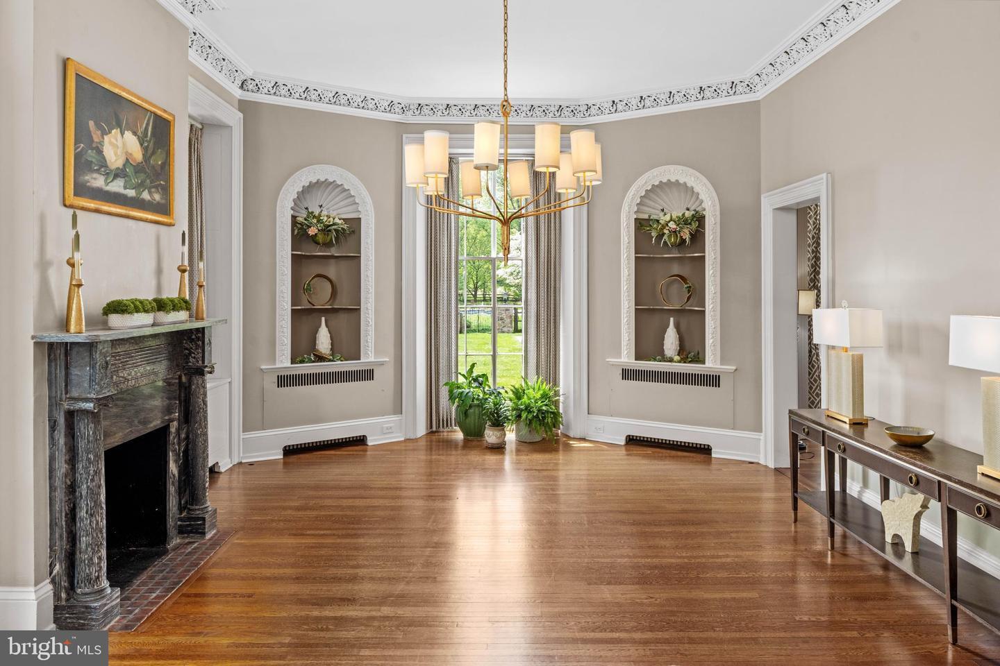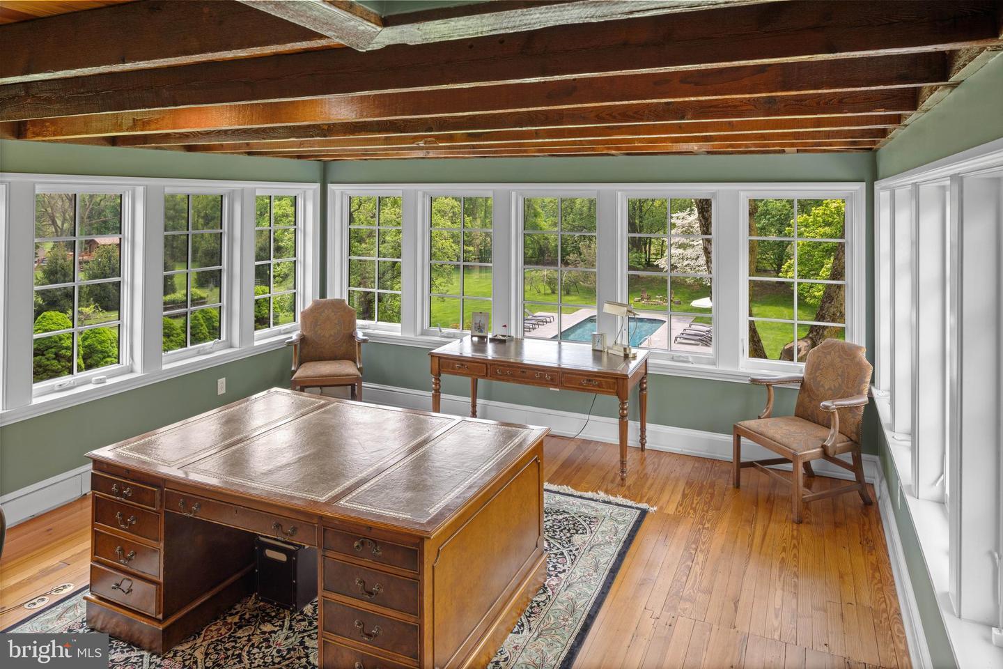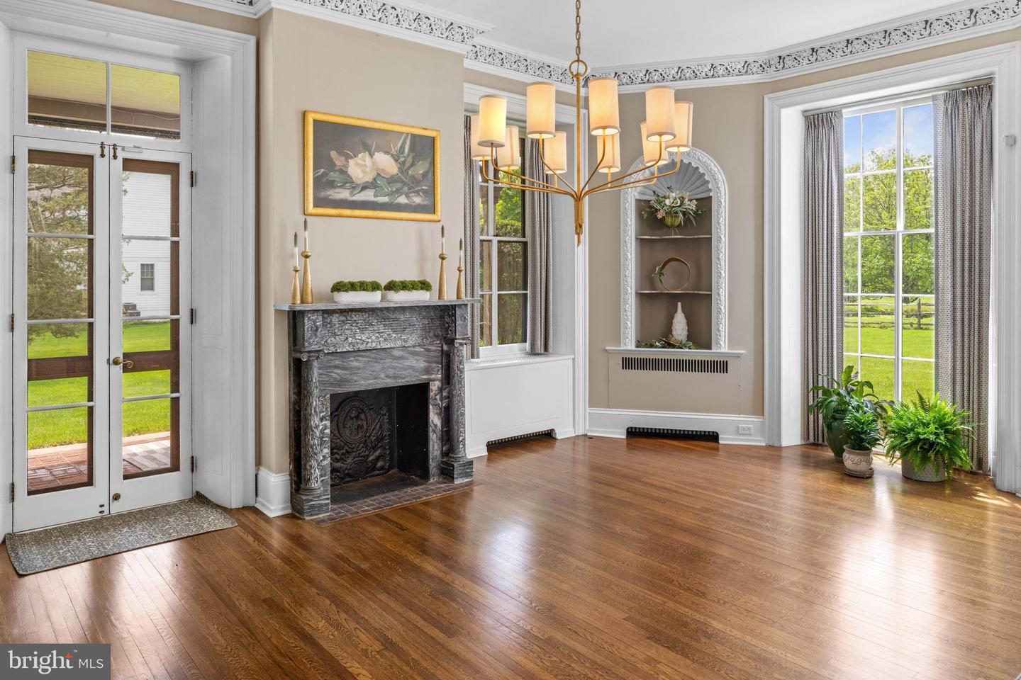 Immerse yourself in historical elegance and luxury at this 8,000+ square foot masterpiece, originally part of the esteemed Armentrout Estate. Nestled within 106 acres of meticulously preserved woodlands and scenic trails, this 8 bedroom, 5 full and 2 half bath Italianate residence underwent a comprehensive restoration in 2009 by the current owners and renowned architect R. A. Hoffman, and was restored with impeccable attention to detail. The estate boasts an array of original features that exude grandeur and craftsmanship, including ornate moldings, multiple marble fireplaces, hand-carved woodwork, and exquisite millwork. An impressive wrap-around porch provides relaxing spaces in which to enjoy the views, punctuated by birdsong. The grandeur continues inside, where the original double front doors open into a stately center hall, flanked by a grand yet comfortable space designed for both entertaining and refined living. Spectacular floor-to-ceiling Jefferson windows bathe the interiors in natural light, enhancing the breathtaking vistas of the estate. To the left, the formal living room with fireplace seamlessly connects through pocket doors to the elegant dining room, adorned with pretty corner built-ins and access to the large wrap-around porch. The expansive gourmet kitchen is a culinary enthusiast's dream, featuring bespoke cabinetry, large marble island, professional-grade 6-burner Wolf stove with double ovens, Sub-Zero refrigerator, and a well-appointed butler’s pantry that includes a rear staircase, powder room, and a versatile mudroom/family entrance. The residence also hosts a delightful wet bar area set against an exposed stone wall, offering direct access to the outdoors. The upper floors are equally impressive, with the primary suite showcasing another marble fireplace and oversized windows that flood the space with light. The luxurious white marble bathroom is complete with a fireplace, soaking tub, walk-in shower, double vanity, and a custom-designed walk-in closet with extensive shelving and storage solutions. Additional bedroom suites and a laundry room with ample storage complete the second floor. Four more bedrooms, a family room with vaulted ceilings, exposed beams and stone walls, and a sunlit office overlooking the grounds and pool, finish off the third floor. The third floor houses more bedrooms, additional storage areas, and a cedar closet. Descend to the basement to discover a spectacular Italian villa-inspired wine cellar and tasting rooms, featuring slate floors, brick arches, and stone walls—perfect for hosting wine tastings and intimate dinner parties. A climate-controlled wine storage room ensures the preservation of valuable collections, and a spacious room with a wet bar, dishwasher, and beverage fridge offers ample space for hosting. The estate's grounds are a sanctuary, featuring multiple gardens, mature trees, an historic icehouse, picturesque stone walls, sitting areas, and a tranquil pool with bluestone patio and pool house. Surrounded by the Camp Woods and Armentrout Preserves, the estate offers easy access to major roads, vibrant shopping and dining, Wings Field, and the train station, ensuring a convenient commute to Center City Philadelphia or New York City. This property is not just a home, but a legacy of luxury and history ready to be cherished by its new stewards.