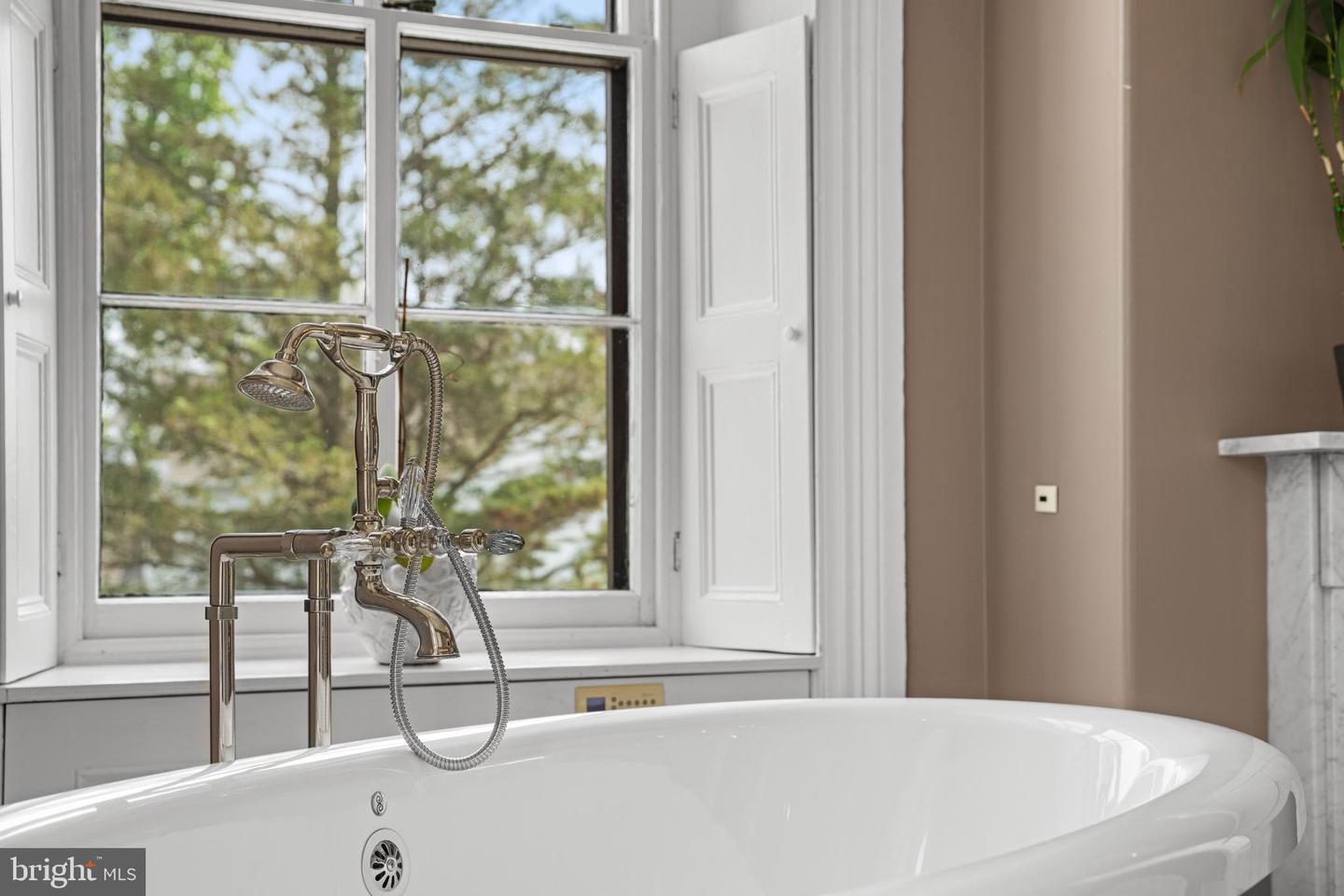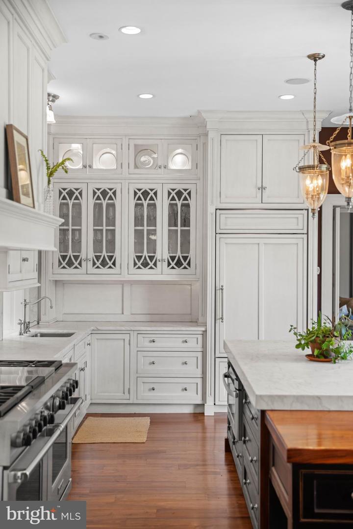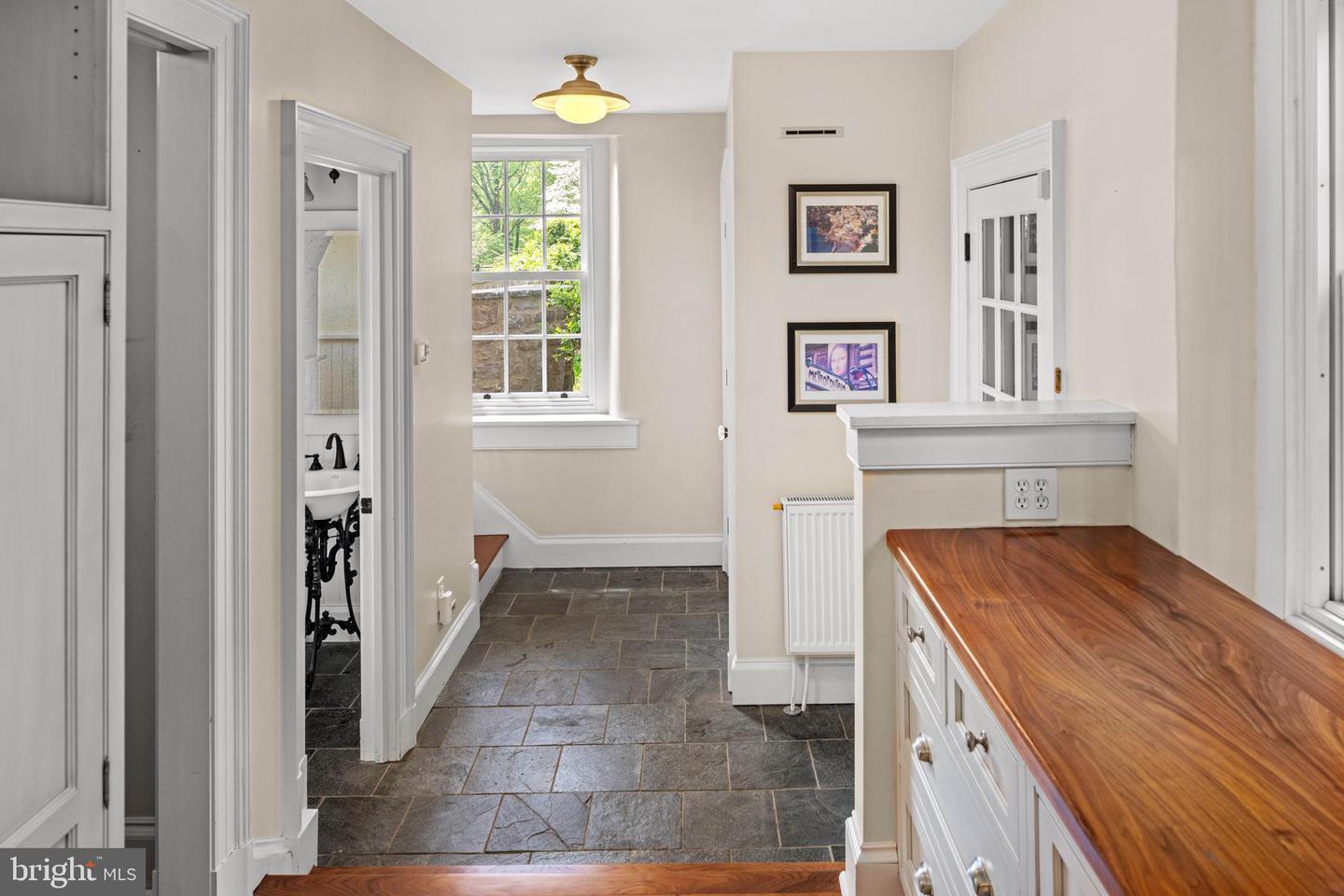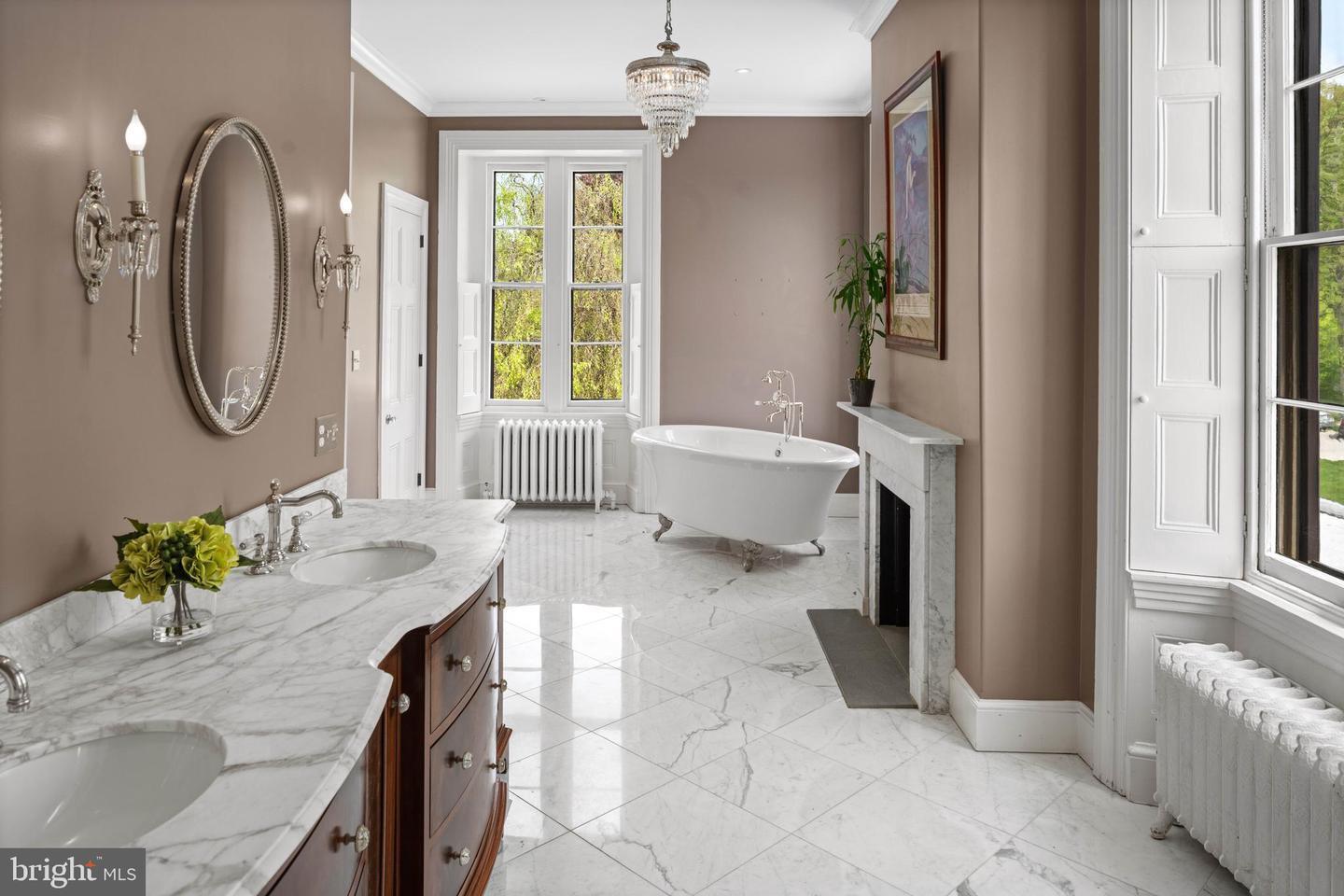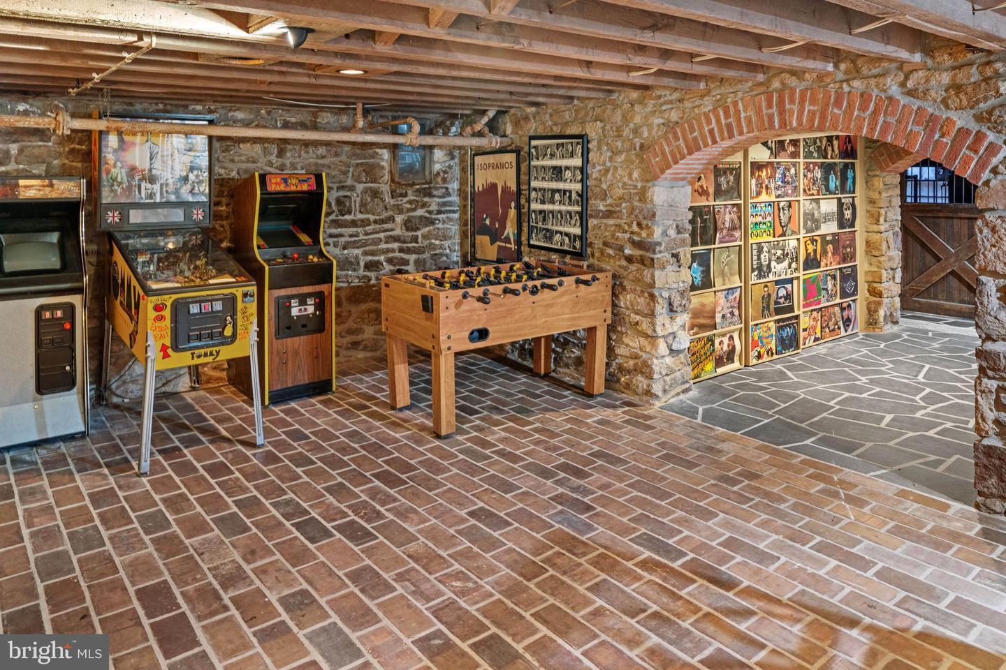 Immerse yourself in historical elegance and luxury at this 8,000+ square foot masterpiece, originally part of the esteemed Armentrout Estate. Nestled within 106 acres of meticulously preserved woodlands and scenic trails, this 8 bedroom, 5 full and 2 half bath Italianate residence underwent a comprehensive restoration in 2009 by the current owners and renowned architect R. A. Hoffman, and was restored with impeccable attention to detail. The estate boasts an array of original features that exude grandeur and craftsmanship, including ornate moldings, multiple marble fireplaces, hand-carved woodwork, and exquisite millwork. An impressive wrap-around porch provides relaxing spaces in which to enjoy the views, punctuated by birdsong. The grandeur continues inside, where the original double front doors open into a stately center hall, flanked by a grand yet comfortable space designed for both entertaining and refined living. Spectacular floor-to-ceiling Jefferson windows bathe the interiors in natural light, enhancing the breathtaking vistas of the estate. To the left, the formal living room with fireplace seamlessly connects through pocket doors to the elegant dining room, adorned with pretty corner built-ins and access to the large wrap-around porch. The expansive gourmet kitchen is a culinary enthusiast's dream, featuring bespoke cabinetry, large marble island, professional-grade 6-burner Wolf stove with double ovens, Sub-Zero refrigerator, and a well-appointed butler’s pantry that includes a rear staircase, powder room, and a versatile mudroom/family entrance. The residence also hosts a delightful wet bar area set against an exposed stone wall, offering direct access to the outdoors. The upper floors are equally impressive, with the primary suite showcasing another marble fireplace and oversized windows that flood the space with light. The luxurious white marble bathroom is complete with a fireplace, soaking tub, walk-in shower, double vanity, and a custom-designed walk-in closet with extensive shelving and storage solutions. Additional bedroom suites and a laundry room with ample storage complete the second floor. Four more bedrooms, a family room with vaulted ceilings, exposed beams and stone walls, and a sunlit office overlooking the grounds and pool, finish off the third floor. The third floor houses more bedrooms, additional storage areas, and a cedar closet. Descend to the basement to discover a spectacular Italian villa-inspired wine cellar and tasting rooms, featuring slate floors, brick arches, and stone walls—perfect for hosting wine tastings and intimate dinner parties. A climate-controlled wine storage room ensures the preservation of valuable collections, and a spacious room with a wet bar, dishwasher, and beverage fridge offers ample space for hosting. The estate's grounds are a sanctuary, featuring multiple gardens, mature trees, an historic icehouse, picturesque stone walls, sitting areas, and a tranquil pool with bluestone patio and pool house. Surrounded by the Camp Woods and Armentrout Preserves, the estate offers easy access to major roads, vibrant shopping and dining, Wings Field, and the train station, ensuring a convenient commute to Center City Philadelphia or New York City. This property is not just a home, but a legacy of luxury and history ready to be cherished by its new stewards.